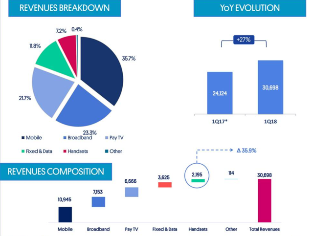 The handsets segment, which only comprises 2.2 billion pesos, rose 36% from Q1 2017 versus the overall revenue growth across all segments of 27%.